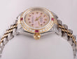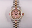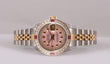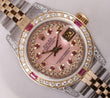 | DIAL | Custom Pink Mother of Pearl Dial with String Diamonds & Ruby Hour Markers. |