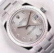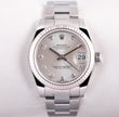 Rolex Datejust 31mm Steel Oyster 18K WG Fluted Bezel Factory Silver Diamond Dial
