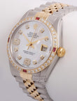 | DIAL | Custom White Mother of Pearl Dial w/ Diamond 6 and 9 and 8 Round Diamond Hour Marks |