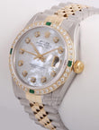 Rolex Datejust 36mm Two-Tone Jubilee Emerald & Diamond Bezel White MOP Diamond