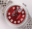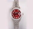 Rolex Ladies Datejust Stainless Steel 26mm Watch-Red Diamond Dial-Diamond Bezel