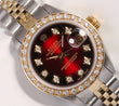 Rolex Lady Datejust 26mm Two-Tone 18K Diamond Bezel Red Vignette Diamond Dial