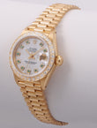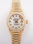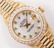 Rolex Lady Datejust President 26mm 18K YG Diamond Bezel White MOP Emerald Dial